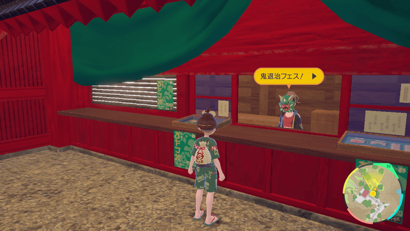 鬼退治フェスは伝説のポケモンのコライドン、ミライドンに乗った状態で行うミニゲームです。オニバルーンと呼ばれる風船を割ってきのみを集め、指定された数をきのみ台まで運びます。