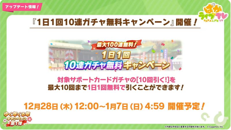 ウマ娘では他にも年末年始に様々なキャンペーンを開催しているので、トレーナーの皆さんはゲームへのログインをお忘れなく!