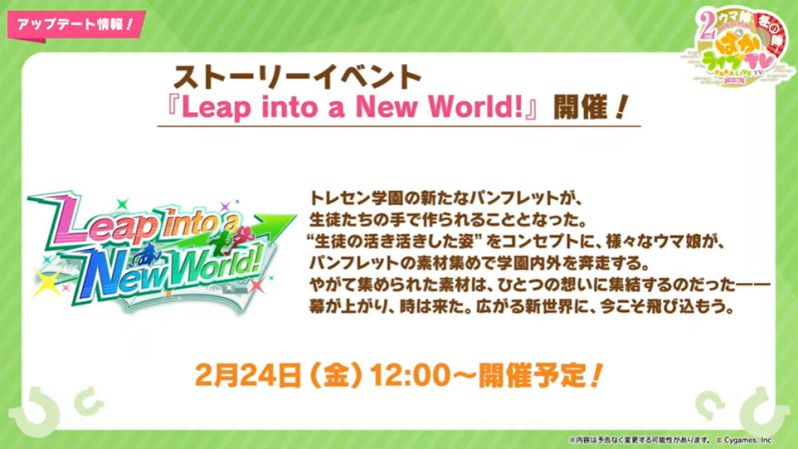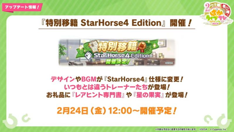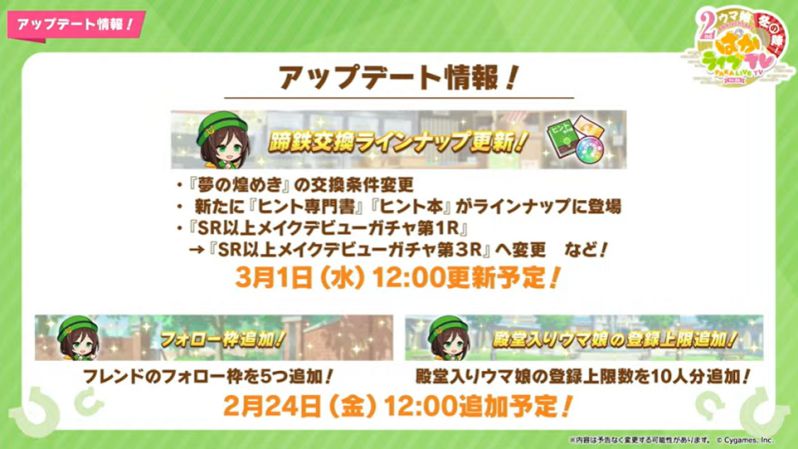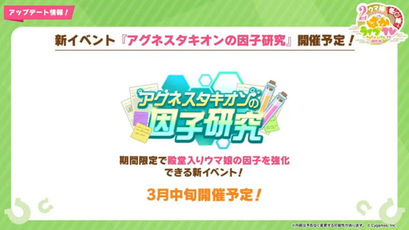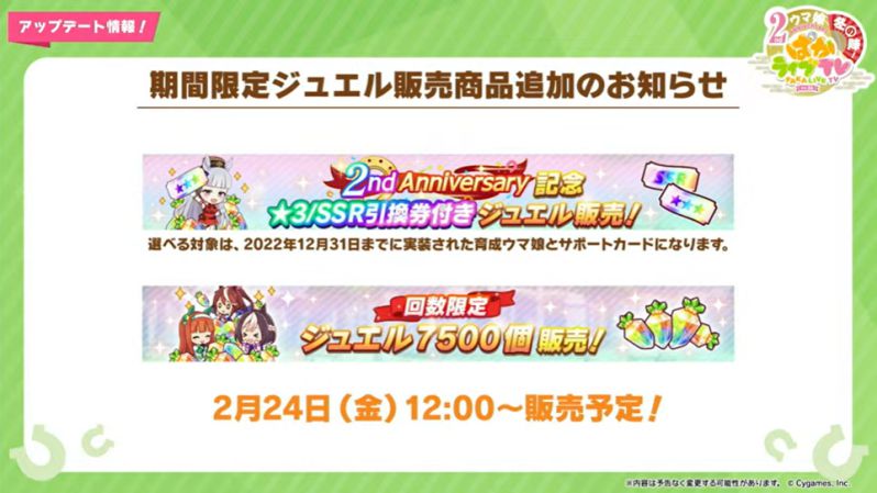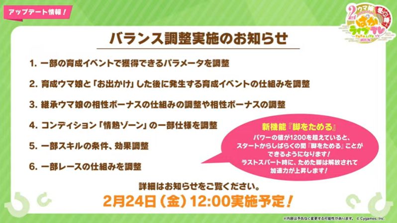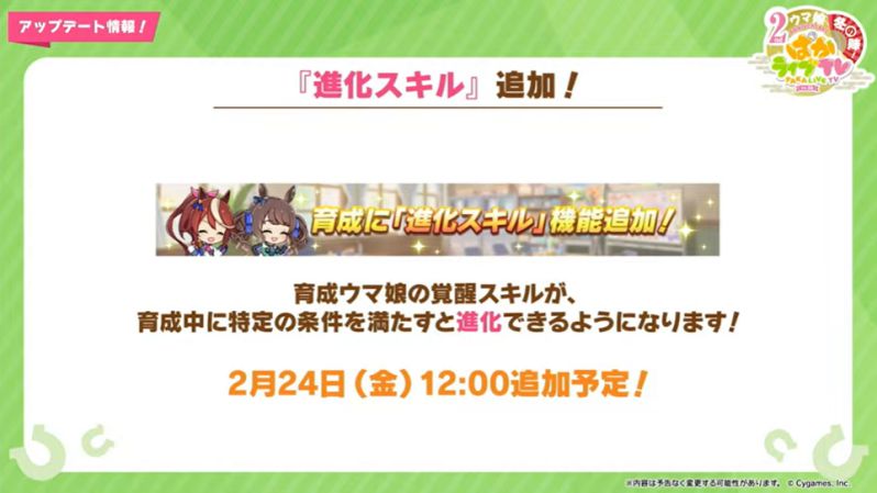 ゲームにアニメと最近大人気の「ウマ娘」のゲーム「ウマ娘 プリティーダービー」は2月22日の「ぱかライブTV」にて、ゲーム内の最新情報のお知らせがあります。