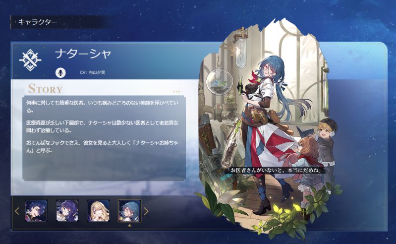 現在ゲーム内で回復枠となる主なキャラは白露とナターシャの2名と限られているので、1章の途中に配布で貰えるナターシャは今後必須になる場面も多くなりそうなので、入手したら優先的に育成しましょう。