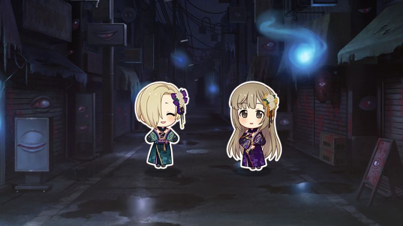 元々はモバマスで初登場したユニットです。小梅ちゃんと2人水着の衣装でお盆に寄り添っていました。その2人が2022年にデレステで「廻談詣り」という曲とともに登場して、とてもテンションが上がりました。