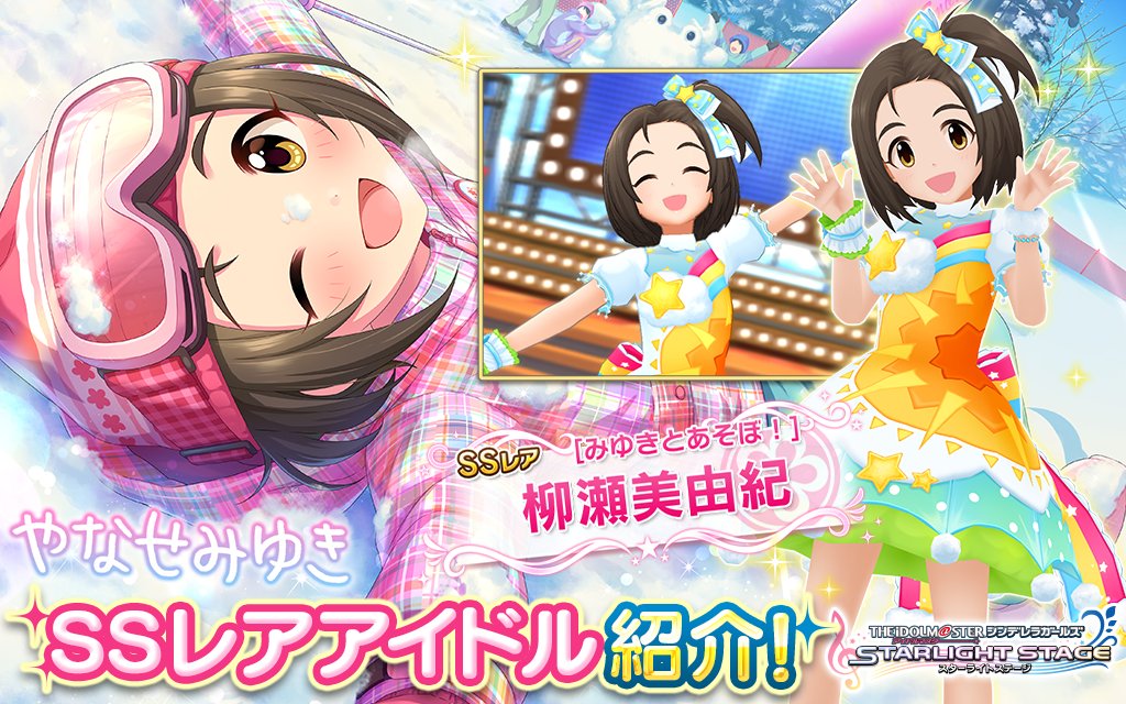 美由紀ちゃんのSSR[みゆきとあそぼ!]柳瀬美由紀は恒常SSRです。ぜひ美由紀ちゃんが気になった方は、スカチケなどの機会に迎えてみてはいかがですか?