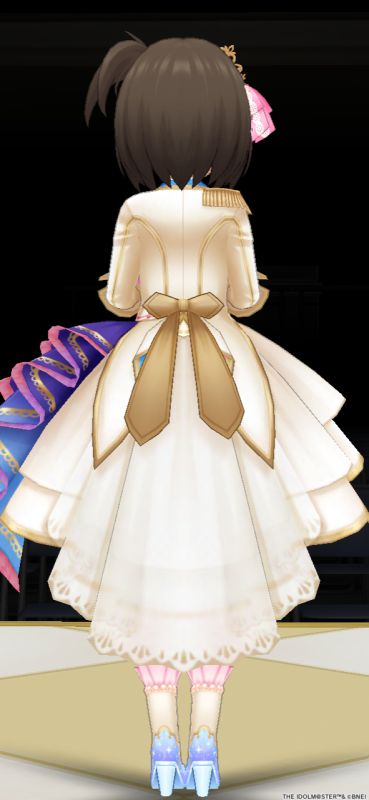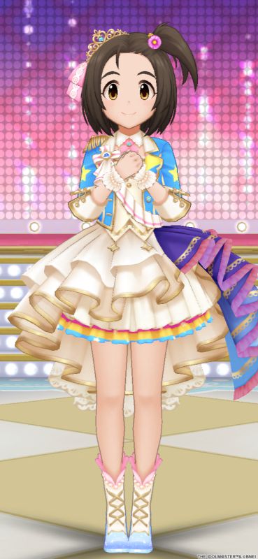 特訓前のチャイルドスモック姿も担当Pがそれがまさに欲しかったんだってもので最高でした、髪飾りのオスメスのヒヨコもかわいすぎる。