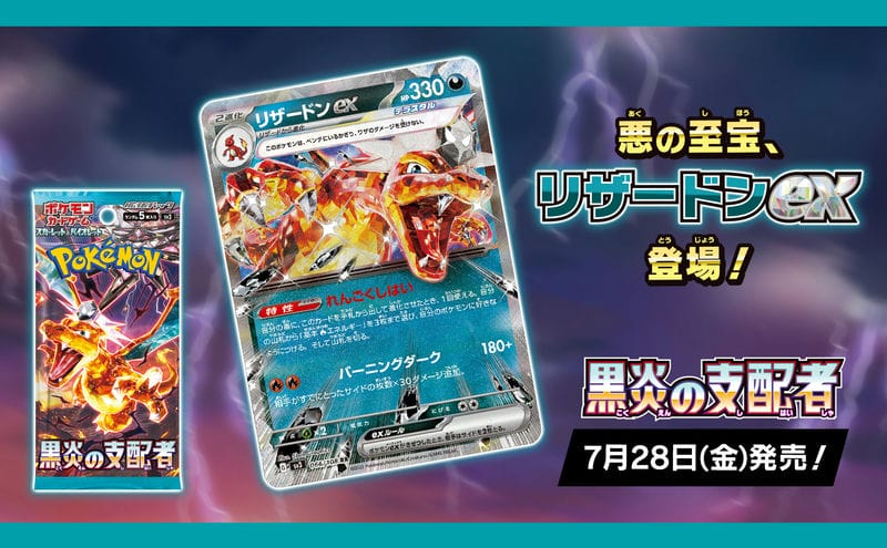 人気ゲーム「ポケットモンスター」シリーズのカードゲーム「ポケモンカードゲーム」から拡張パック「黒炎の支配者」が7月28日に発売いたします。