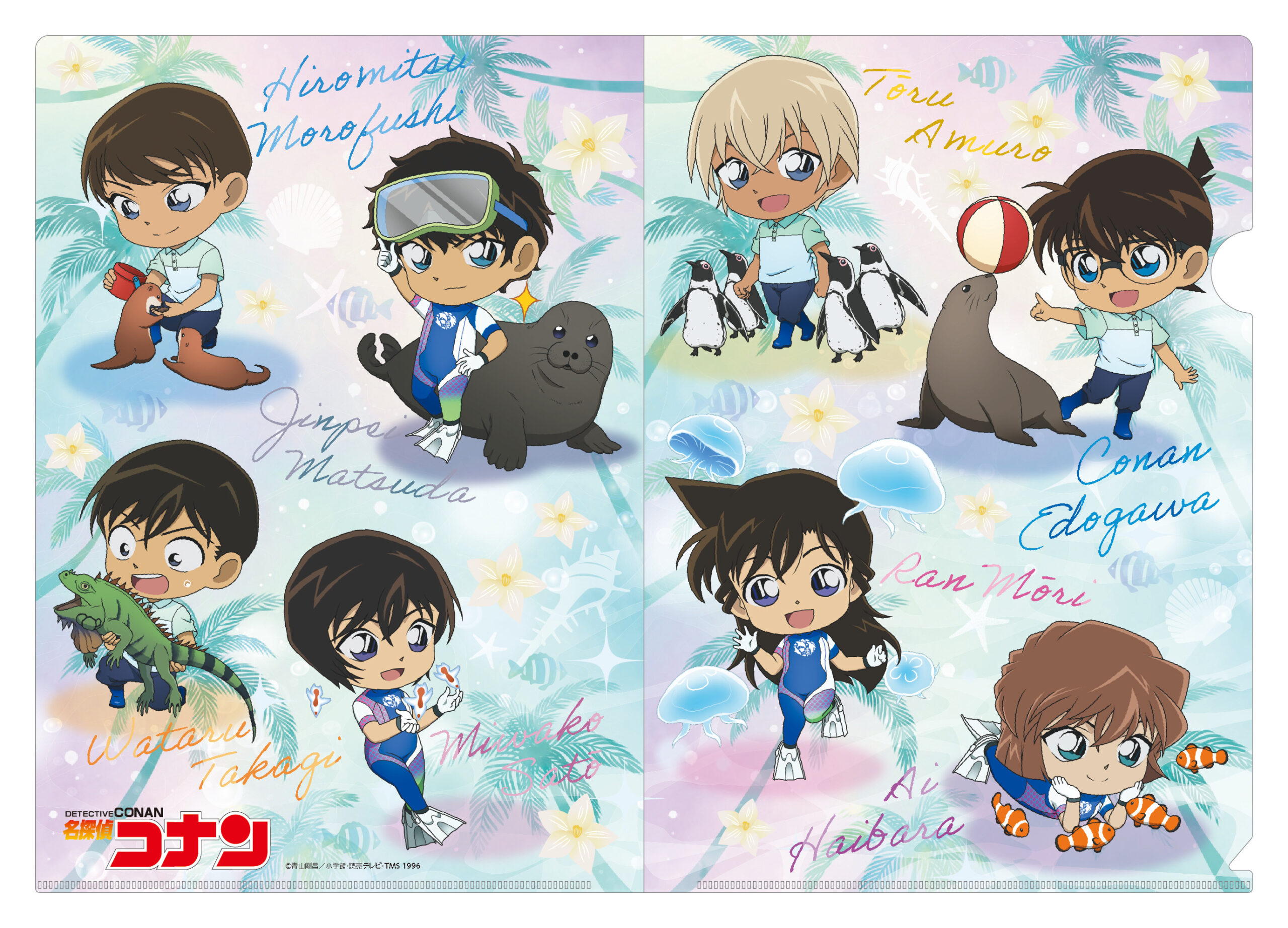 名探偵コナンのキャラクターと一緒にサンシャイン水族館の人気者の生き物たちが一緒に写っているものや、サンシャイン水族館の飼育スタッフさんと同じ格好をしたコナン達の姿もあります。
