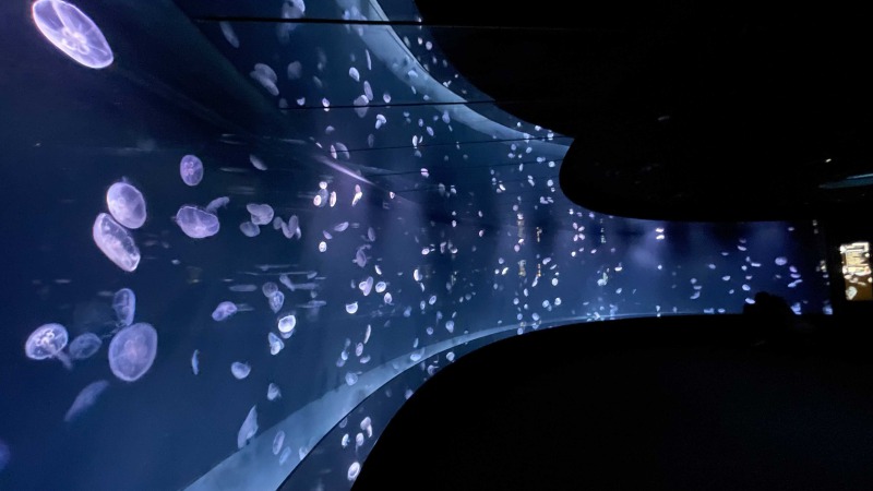 入ってすぐにあるのは、横幅約14mの「クラゲパノラマ」!