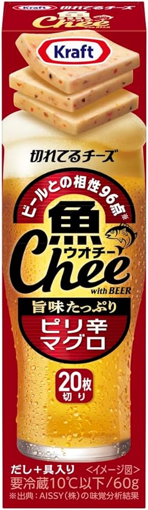 「クラフト 魚Chee(ウオチー)燻製カツオ」と「クラフト 魚Chee(ウオチー)ピリ辛マグロ」はビールに合う絶品チーズとして、おつまみはもちろん、おにぎりに入れて食べるのにもおすすめのチーズです。