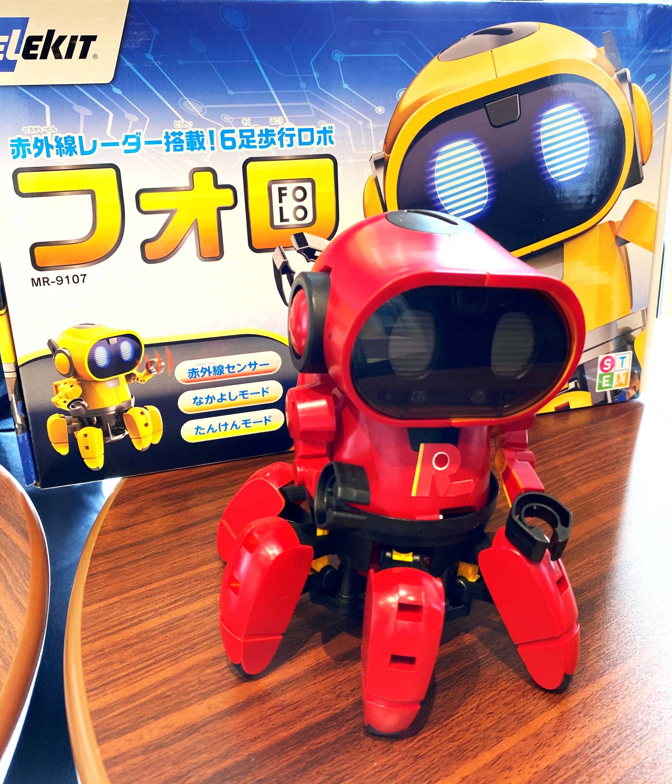 その中で一番の人気は「フォロ」というキットだそう。足元のセンサーが反応し動くロボットで、工具さえあればパソコン不要で作成できるといった点が人気を集めているという。ここではオリジナルのロボットマートカラーの「フォロ」を見ることができる。