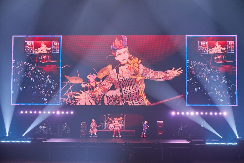 レーザー、ライト、スモーク、炎などド派手な演出はもちろん、会場の広さを活かしたプロジェクションマッピングも印象的でした。